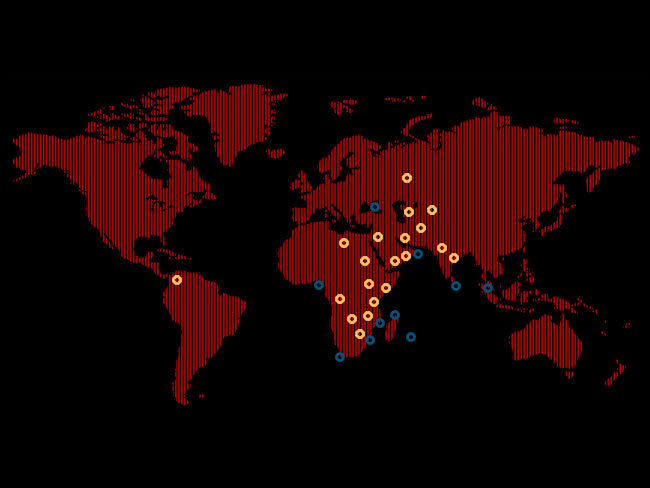 En Afrique, Au Proche Orient, en Asie Centrale, en Asie de Sud-Est, dans l ‘océan Indien ou Atlantique des dizaines des groupes de sécurité de RSB-Groupe peuvent à la fois assurer et accomplir l’ensemble des actions sur la protection armée des valeurs matérielles et des collaborateurs de compagnies de nos clients dans les zones à haute activité terroriste. RSB-Groupe aide à organiser le travail des gouvernements, des établissements de l’Organisation des Nations Unies, des organisations internationales pibliques ou à but non lucratif mais aussi de l’activité commerciale à travers le monde.